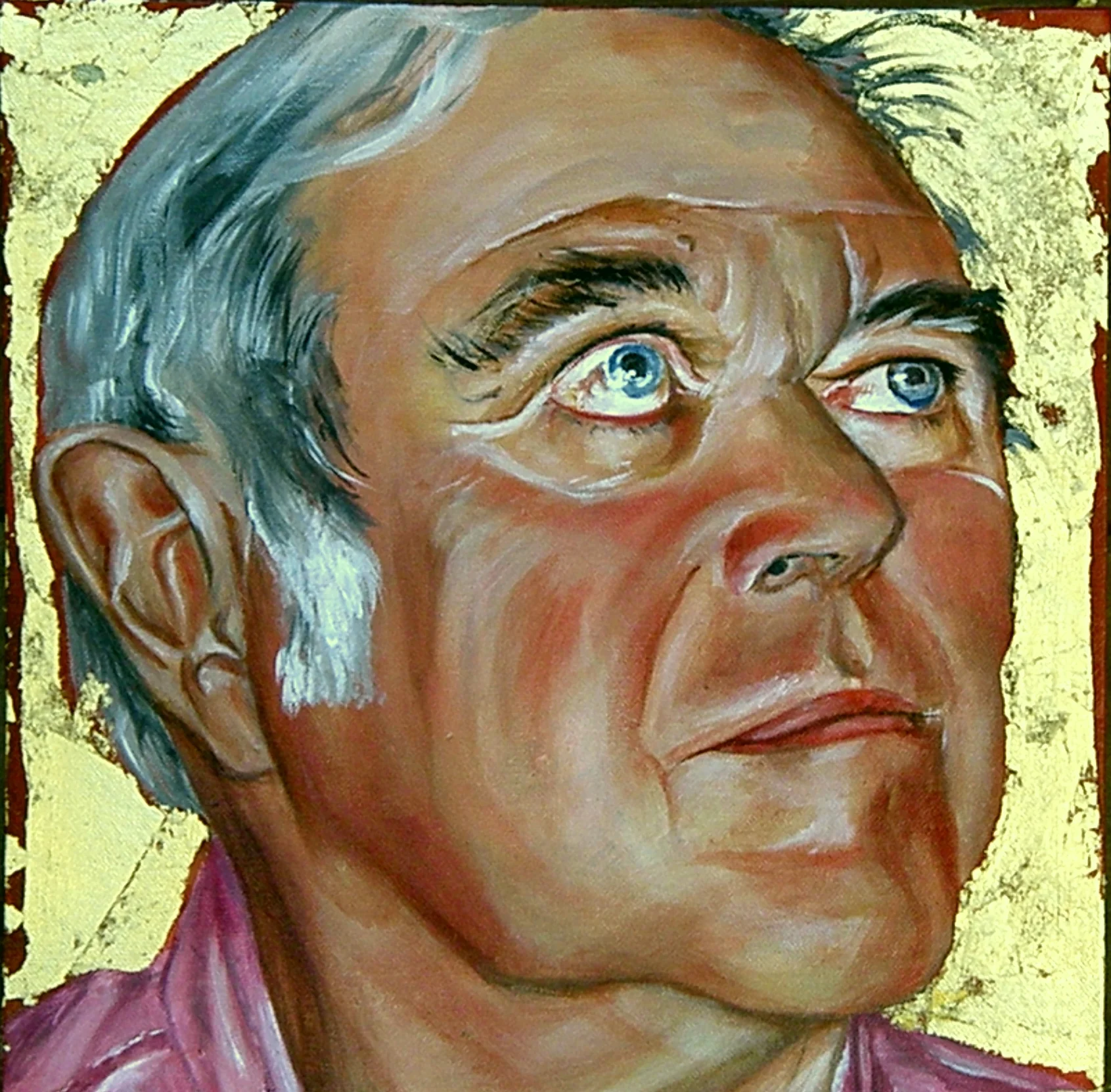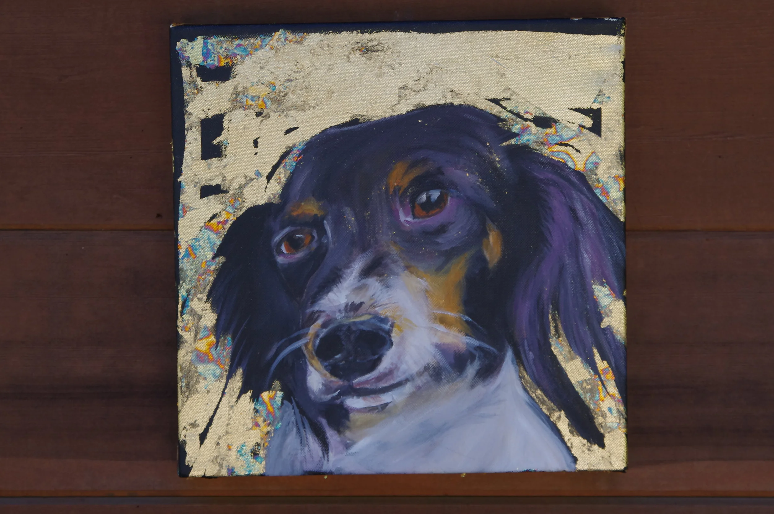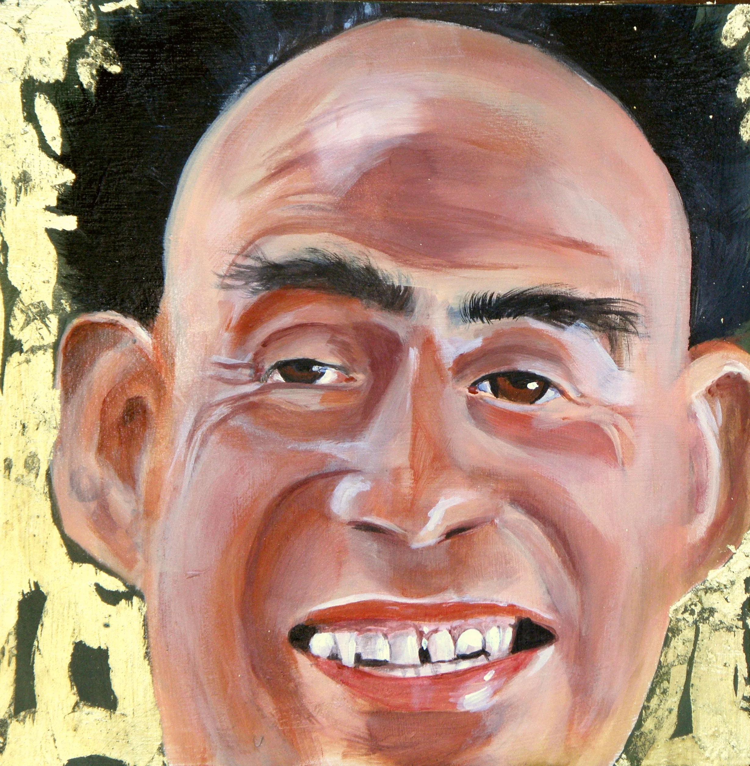 Commissioned portrait prices: 12 X 12 inches $550, 14 X 14 inches $750 16 X 16 inches $980, 18 X 18 inches $1,240, 20 X 20 inches $1.525, 30 X 30 inches,$3440, $1,525, 30 X 40 inches $4,585. All works are done in acrylic, and gold leaf, except for the ones done on paper which are done in gouache, or the Iconvicts done in gouache on tin and gold leafed. For bulk orders ask for Mr. Whiskers.